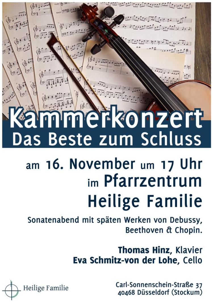 16. Kammerkonzert — Duo-Programm, Werke von Brahms & Beethoven — zu Gast im Saal der Pfarrgemeinde Hl. Familie Düsseldorf.